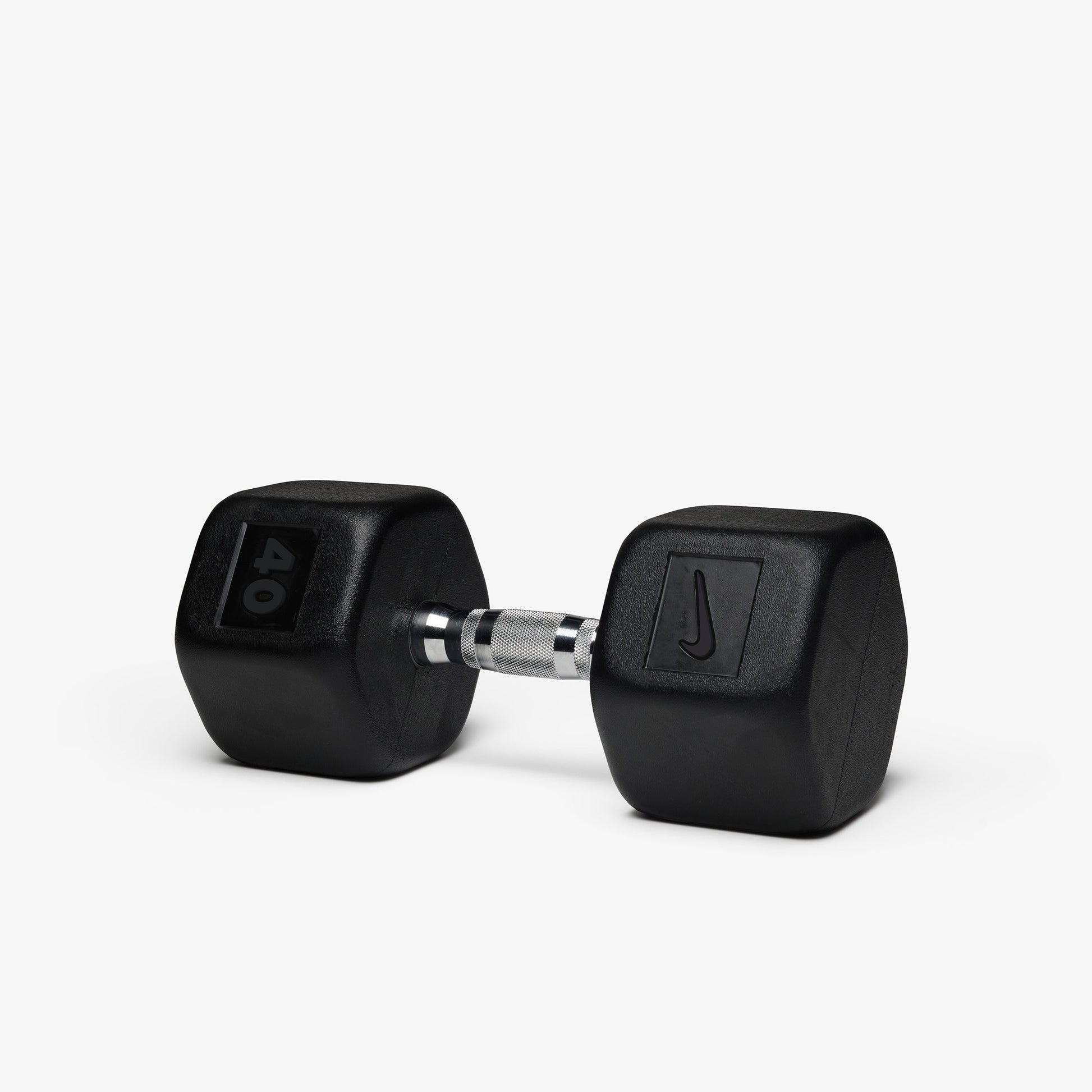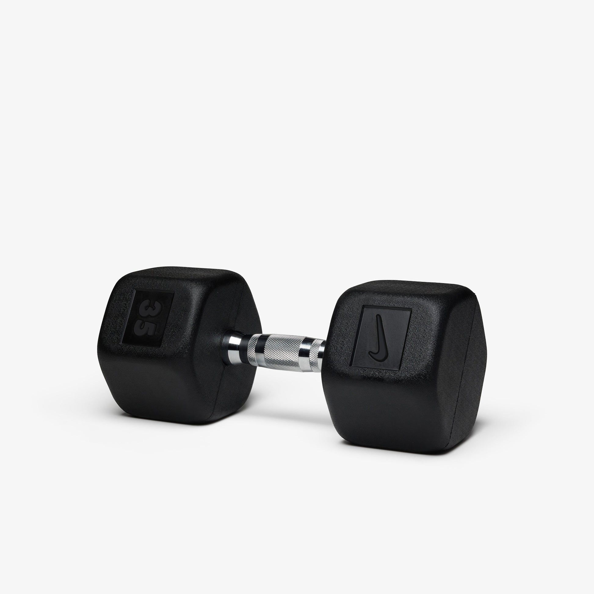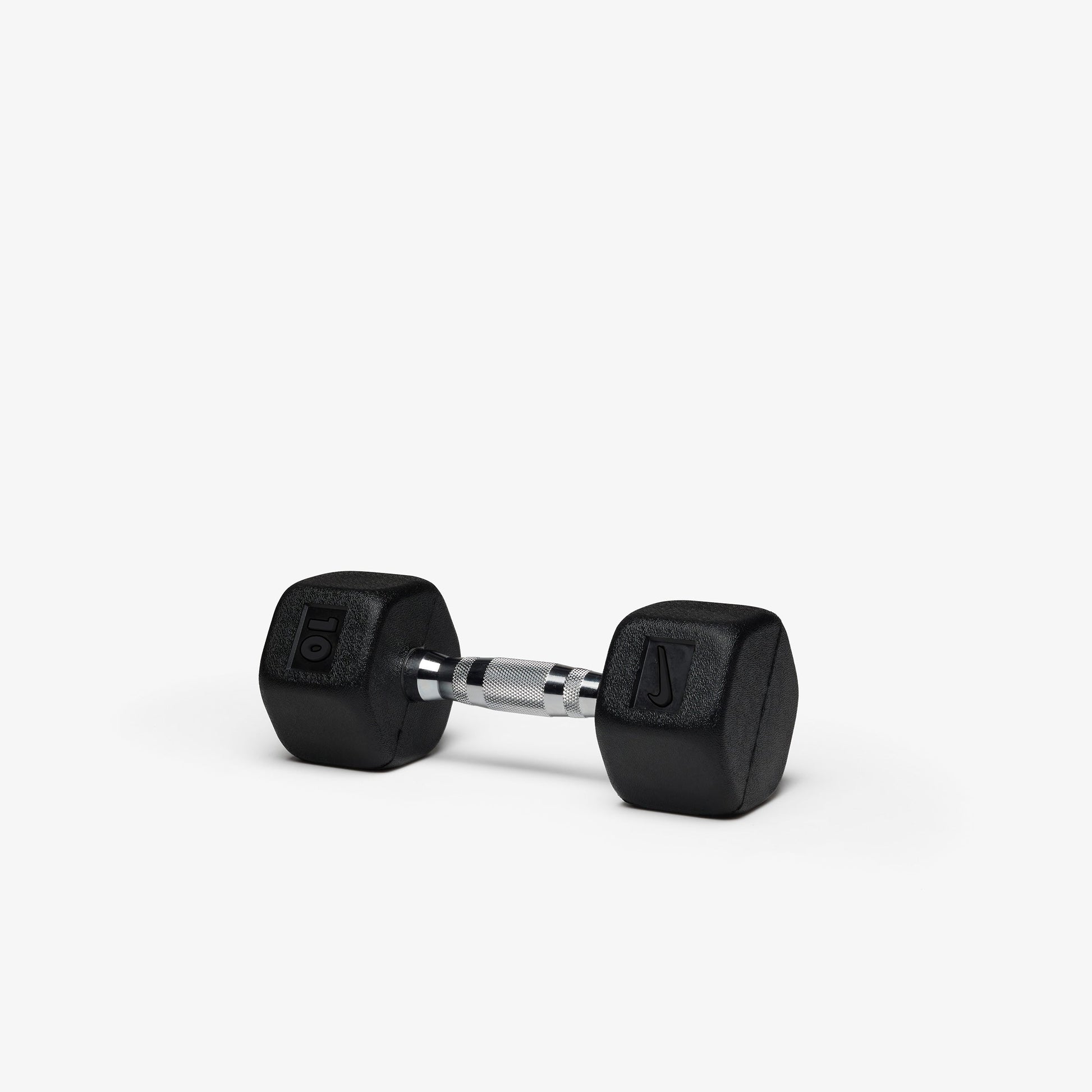 Durable rubber hex construction prevents rolling and reduces damage to floors
