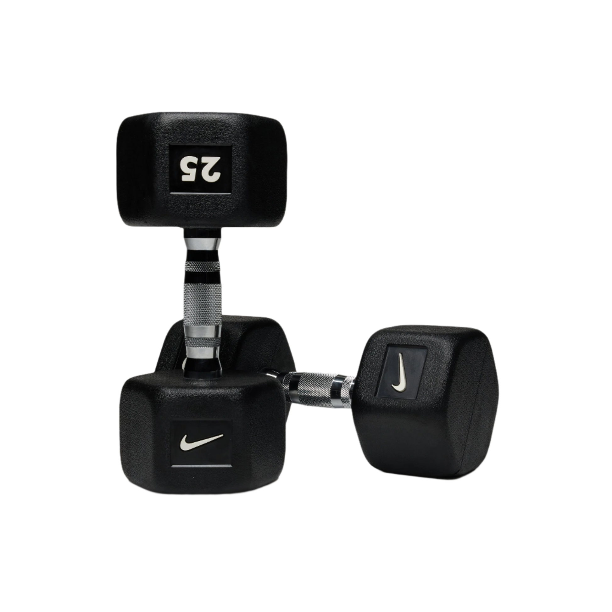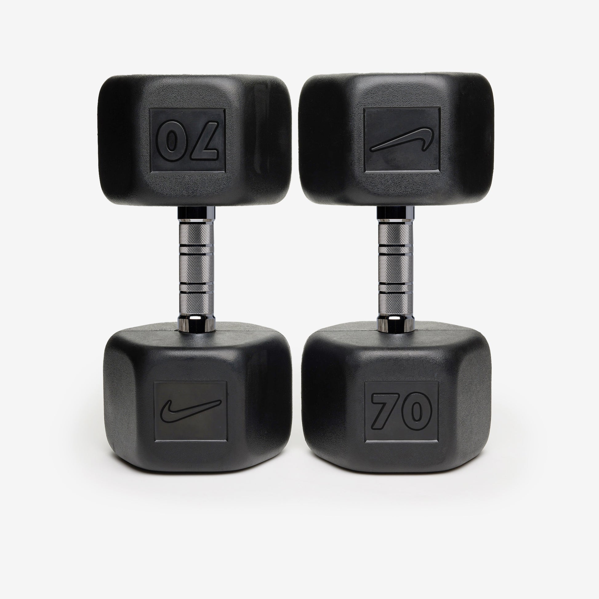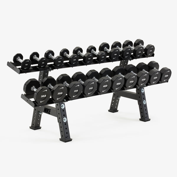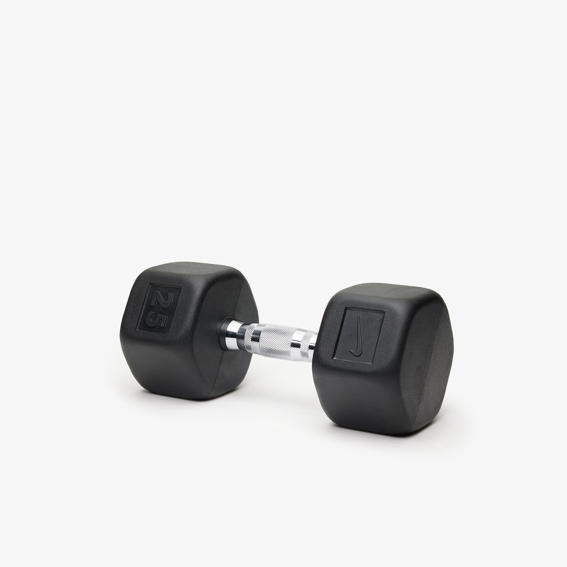 Durable rubber hex construction prevents rolling and reduces damage to floors