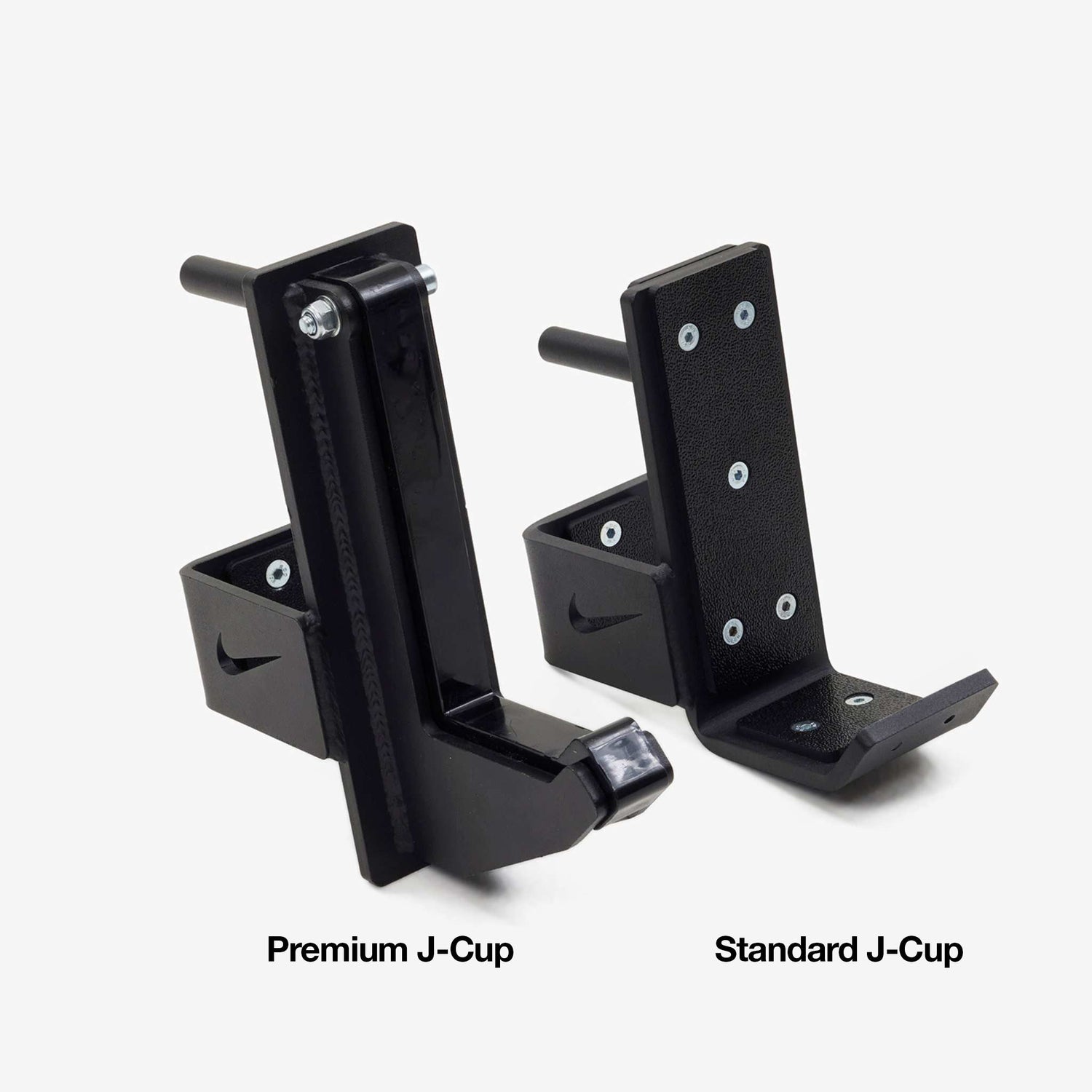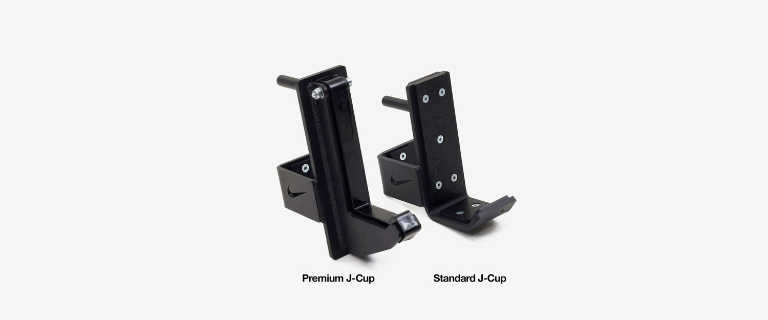 The Premium J-Cup's narrower, 1" wide nylon pad provides extra space for smoother barbell re-racking compared to our Standard J-Cup and reduces metal-on-metal contact for increased barbell protection. All Nike Strength racks come equipped with Standard J-Cups - upgrade to Premium J-Cups for enhanced performance and protection.
