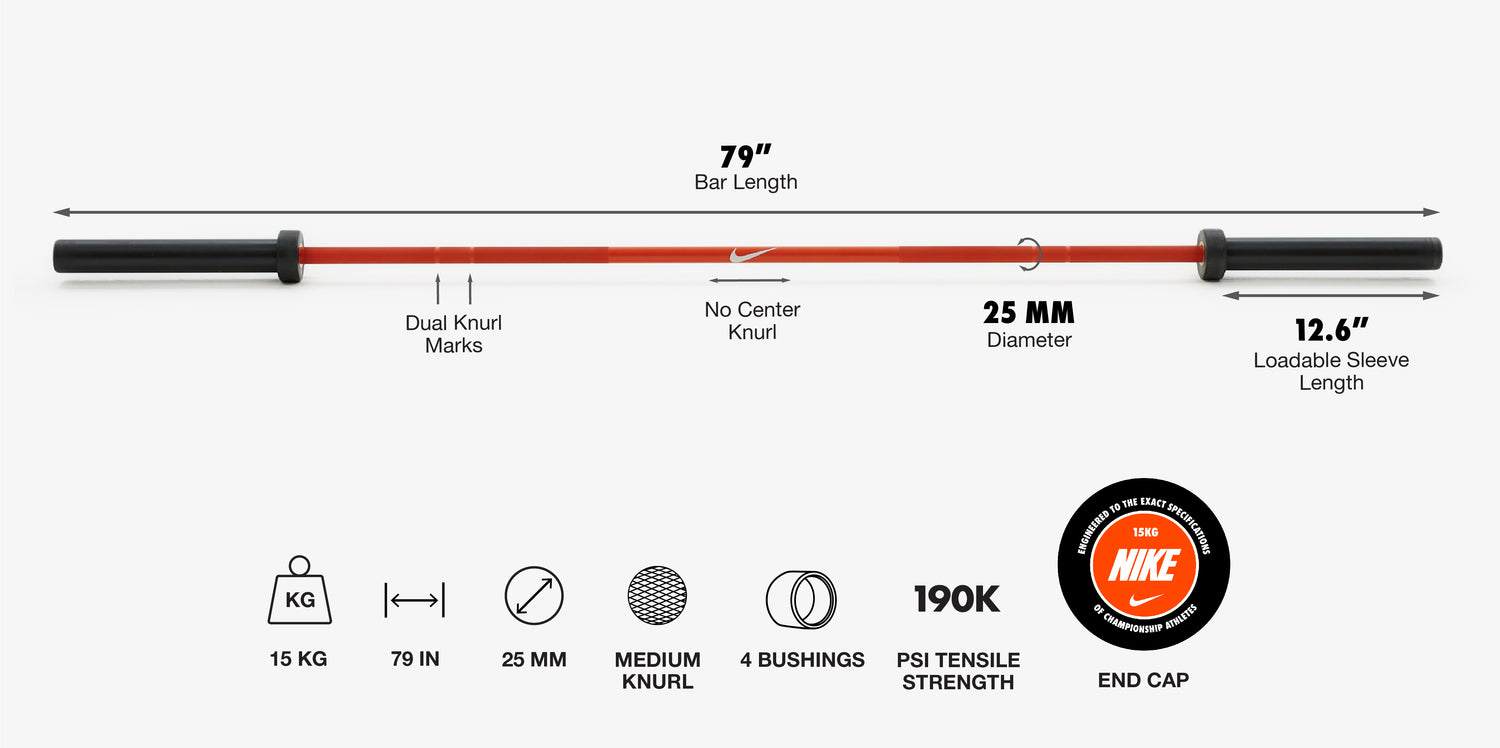 Knurling texture helps you get a secure grip on the bar and dual knurl marks help guide your hand placement