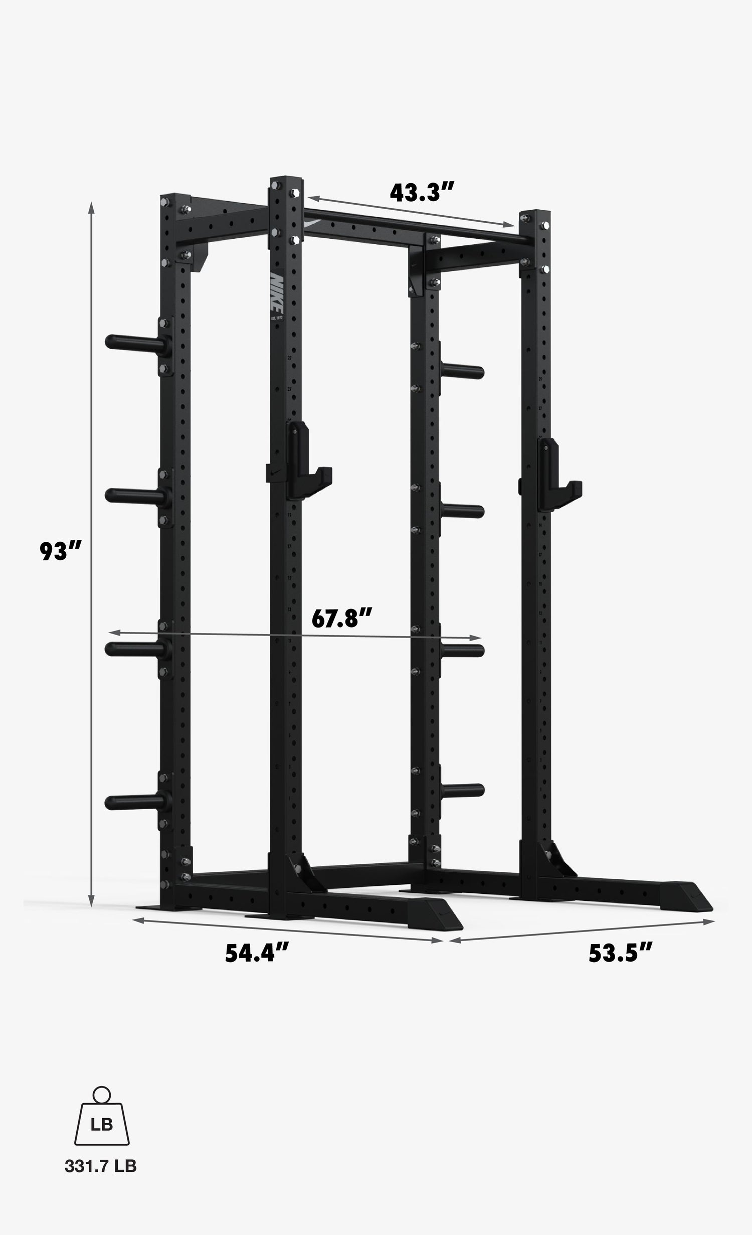 - Attachment Compatibility: Nike Half Rack Flat Storage Shelf, Nike Dip Station, Nike Spotter Arms