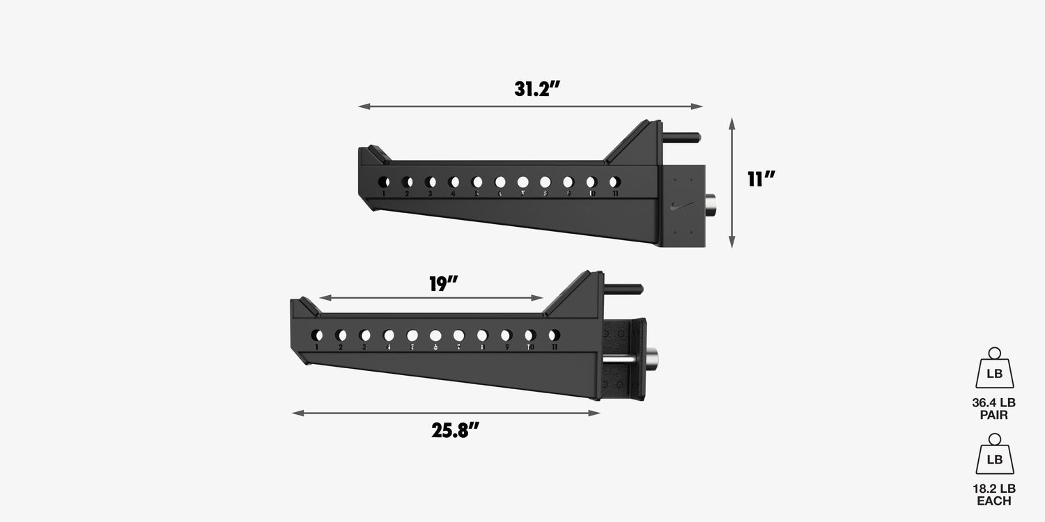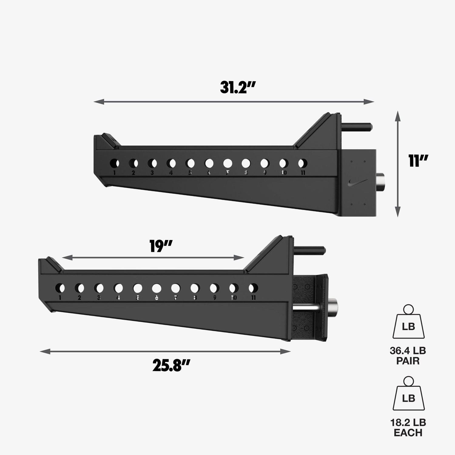 Built for elite training environments, the Nike Strength Pro Spotter Arms are engineered to handle the highest loads and the most demanding lifts. Designed for use with the Nike Strength Pro rack system, they deliver uncompromising strength, safety, and speed of adjustment in commercial settings.